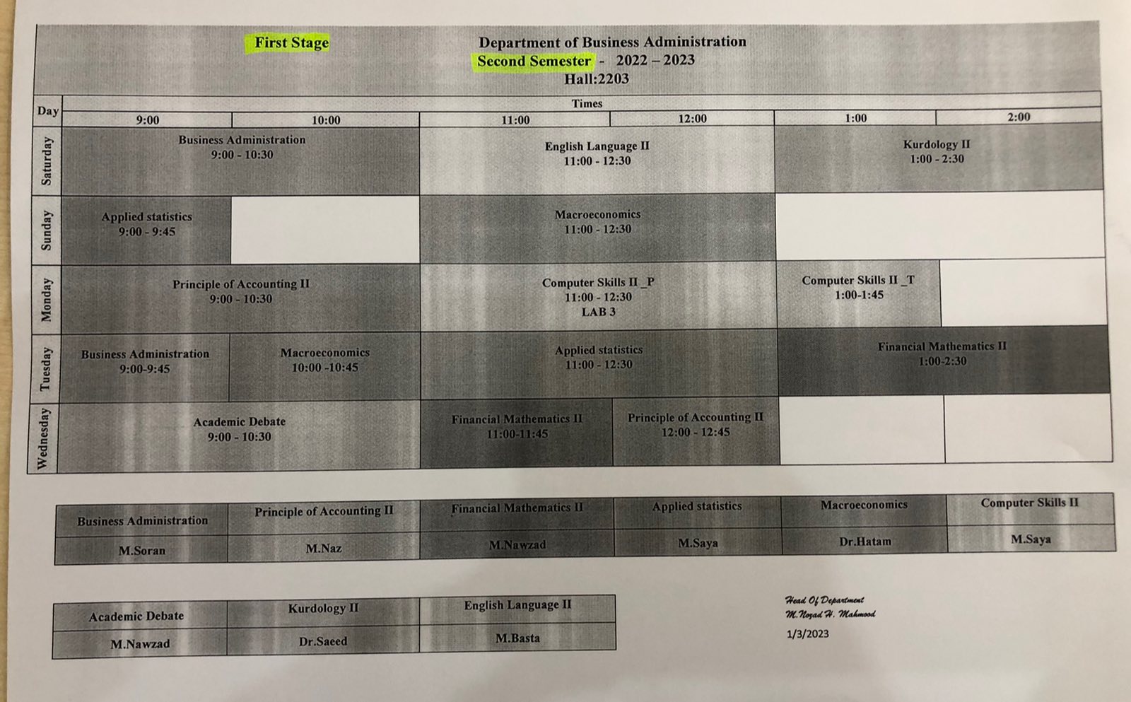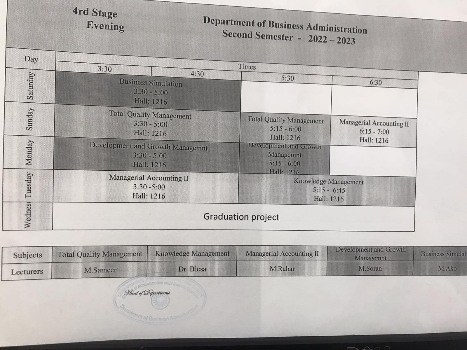 p. of management/ B,Administration |