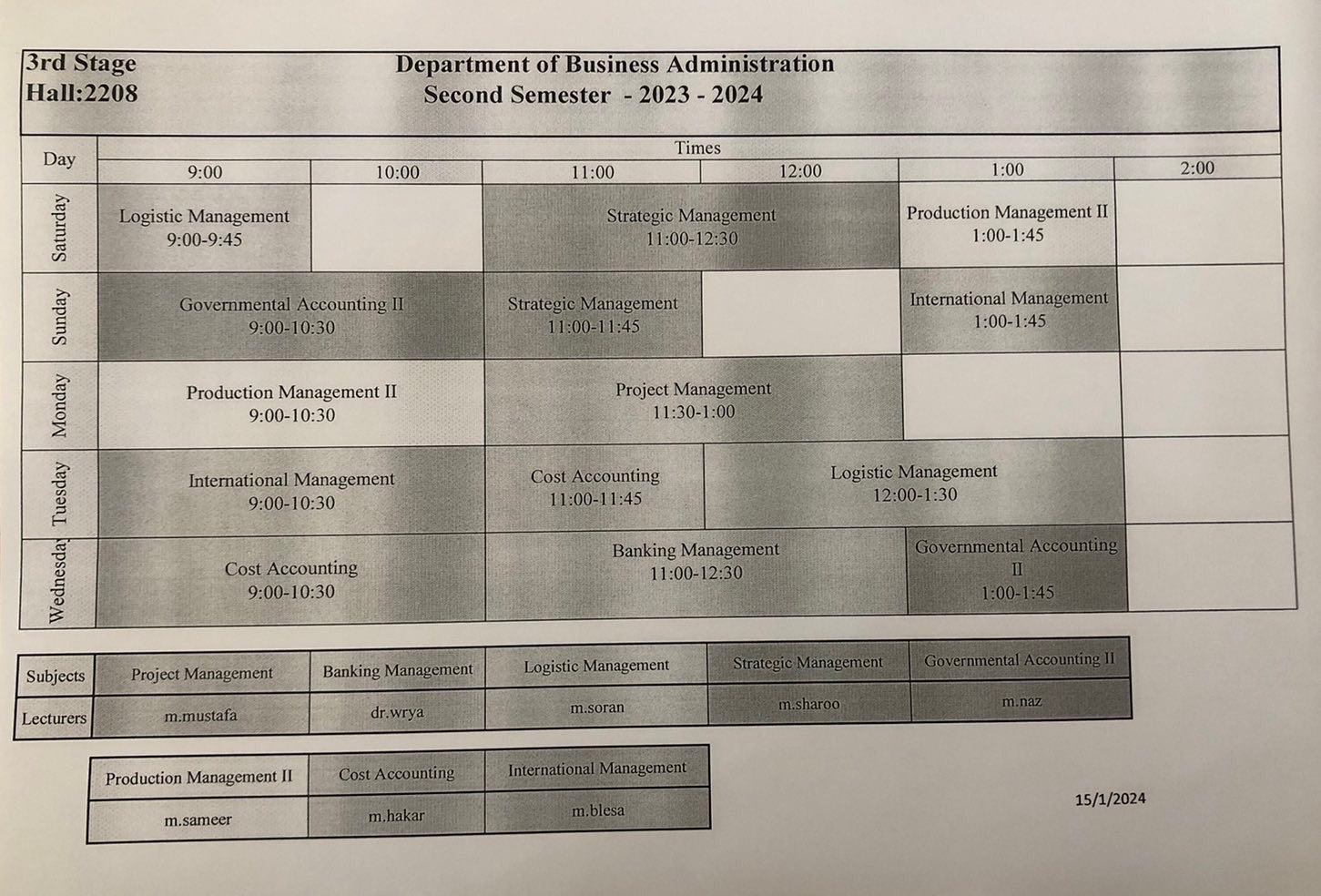 Timetable |